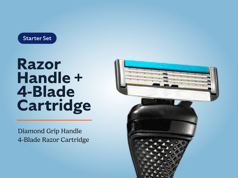 The Starter Set includes one Diamond Grip Handle and one 4-Blade Razor Cartridge.